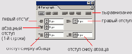 Рис. 12.18. Назначение основных параметров форматирования абзаца в палитре Paragraph